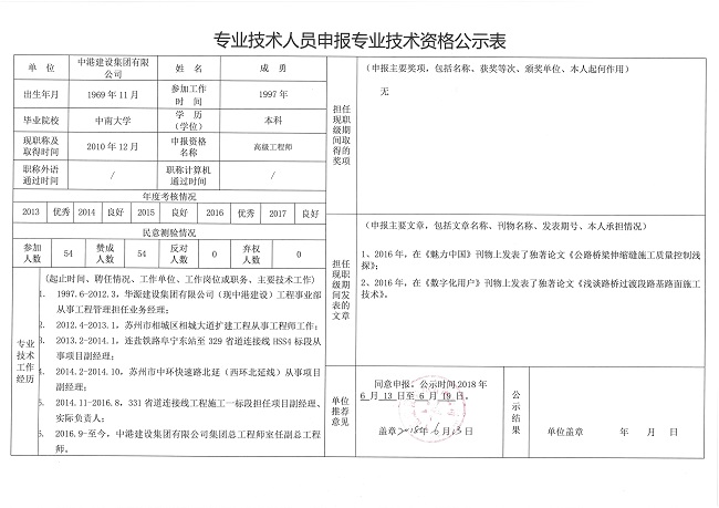 專業技術人員申報專業技術資格公示表—成勇